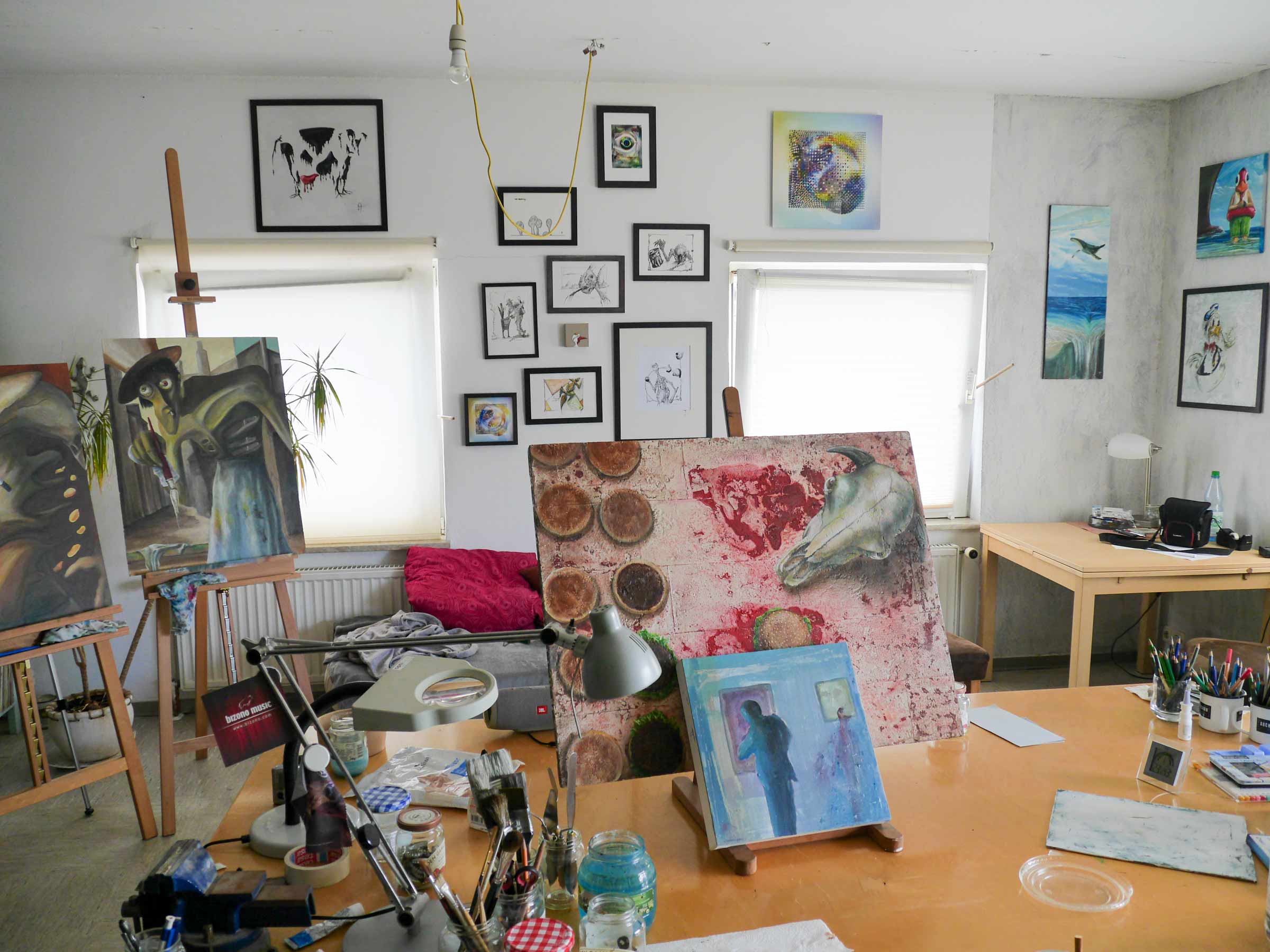 Die Studiogalerie Ravensberg ist ein Studio für Grafikdesign und Illustration, ein Atelier für Malerei und dann noch Probenraum. Um das Fass abzurunden, wird sie ab dem 28. August 2022 auch zur Galerie.